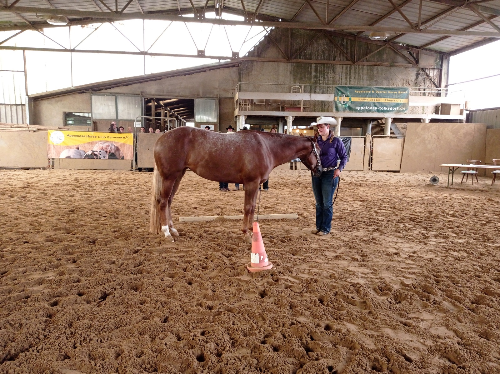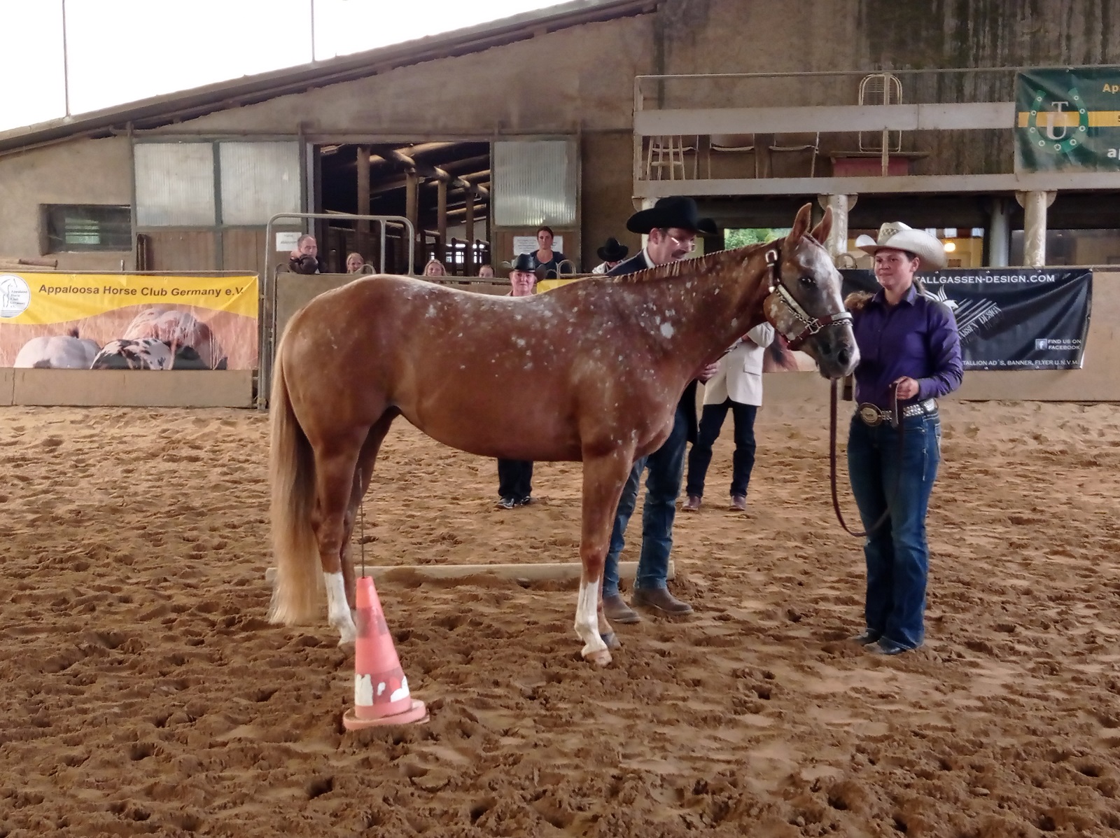 Am Samstag trafen sich Züchter und Appaloosa-Liebhaber für das zweite Mal in Pappenheim, auf der Zuchtschau von Bernd Krämer (BK Appaloosa).Gemeldet waren sechs Pferde, darunter zwei Stutfohlen, ein Hengstfohlen und drei Stuten, alle im Besitz von Bernd Krämer. Das Richterteam, bestehend aus Béatrice Zimmermann und Marc Linnebacher fand sich gegen 09:30 am Platz ein, man begrüßte sich und das erste Pferd stand in den Startlöchern. Somit begann die Zuchtschau gegen 10:15 Uhr mit der Bewertung. Zuerst stand die Pflasterprobe an, bei der sich die Stuten samt Fohlen bei Fuß zeigten. Am Platz wurden sie nacheinander dann sowohl im Stand als auch in der Bewegung eingehend von den Richtern begutachtet. Sie nahmen sich Zeit und verkündeten dann ausführlich vor dem anwesendem Publikum, wie auch bei allen nachfolgenden Startern, das Ergebnis.